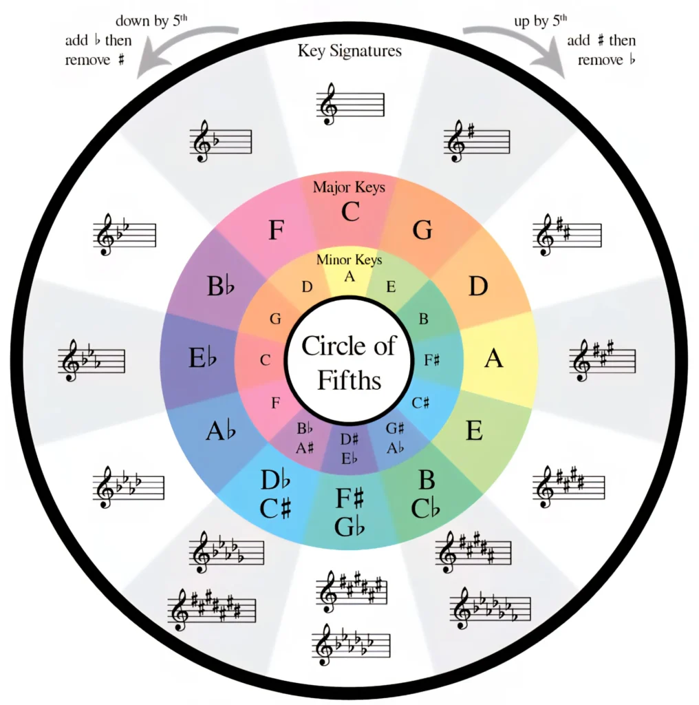 If you walk into any professional recording studio or music school, you will likely see a clock-like diagram on the wall. This is the Circle of Fifths. It is the “Periodic Table” of music—it organizes all 12 keys into a perfect mathematical loop.