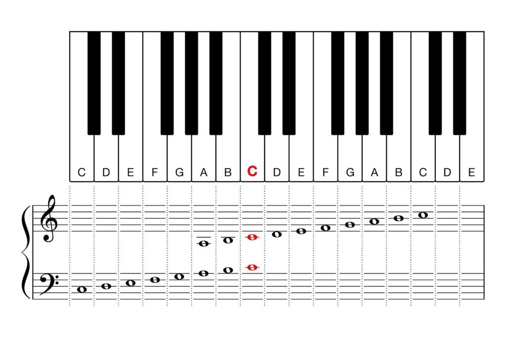 Middle C on a piano keyboard, learning aid and cheat sheet